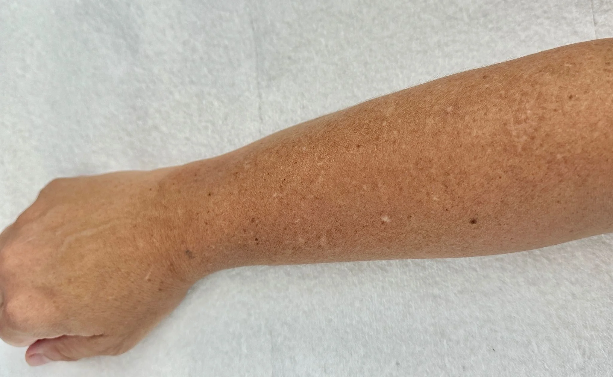 Sun exposure can lead to white spots, known as idiopathic guttate hypomelanosis, due to UV damage. Paramedical camouflage, involving specialized tattooing, effectively blends these spots with surrounding skin, offering a natural appearance.
